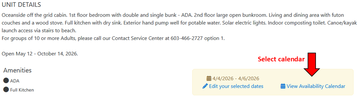 Cabin Availability To view the KBC Availability Calendar, please read these instructions then select the link at the bottom of this page. Availability Calendar on AMC’s Reservation System